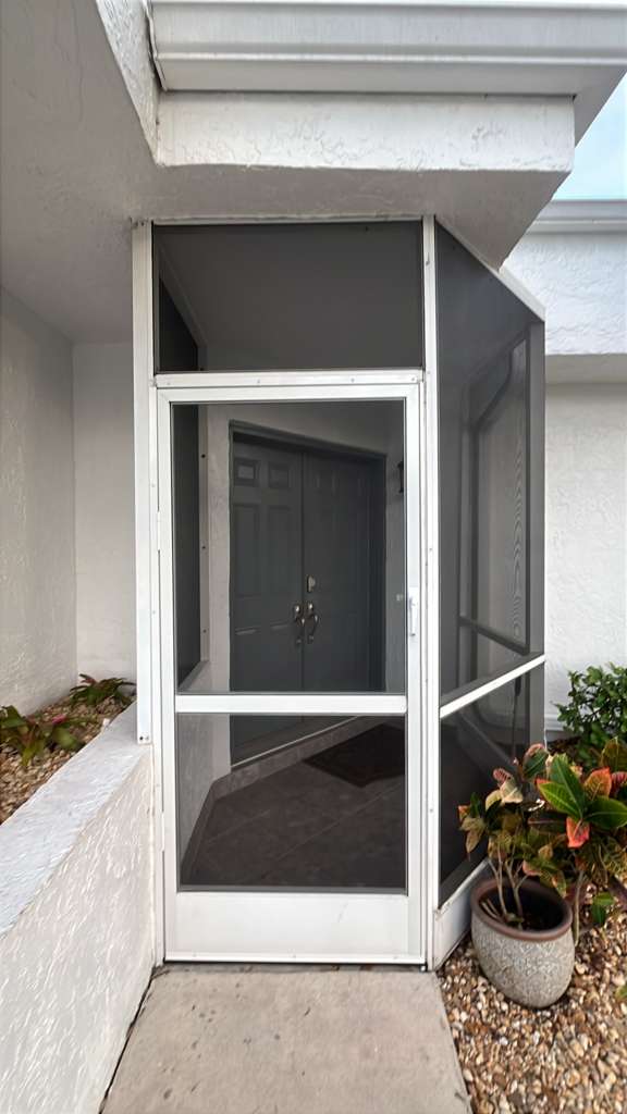 The result was a clean, functional screened entryway that keeps insects out, reduces debris, and improves the overall usability of the home’s front entrance. The homeowner now enjoys a more protected and welcoming entry that blends naturally with the home’s exterior in Royal Palm Beach, FL.